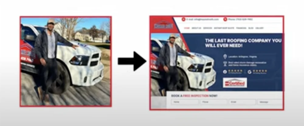 Here is an example of what we are looking for. You don't have to stand with your truck. Any branded material is fine. A good looking half body image of the owners, or team will be fine. Send as many pictures as you want. We will use the ones that look the best.